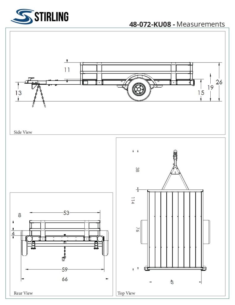 The Stirling 4’ x 6’ Rail Side Kit Trailer provides a compact, practical hauling solution for homeowners and weekend users. Delivered as a complete DIY kit, it includes rail sides and a finished floor, offering added cargo support and immediate usability once assembled.