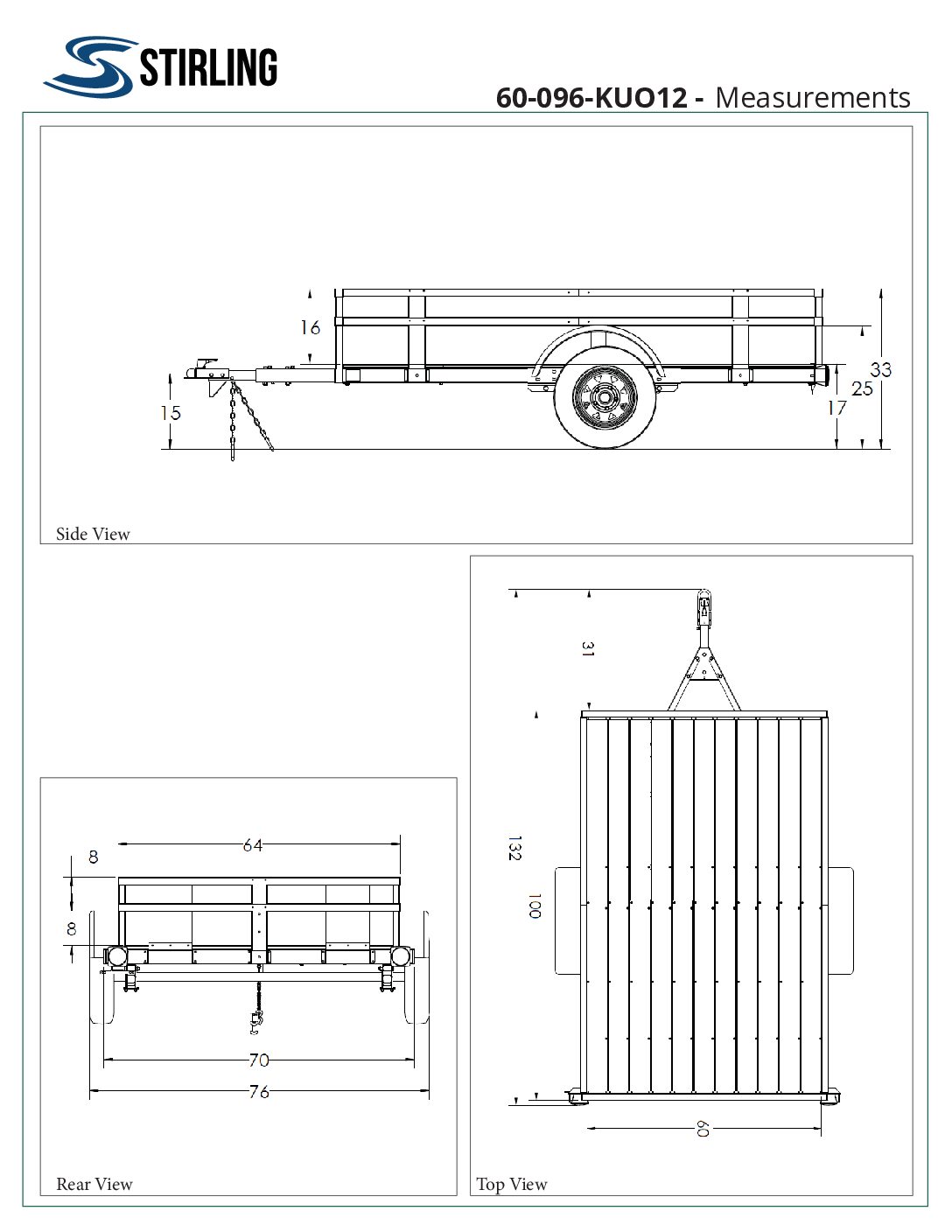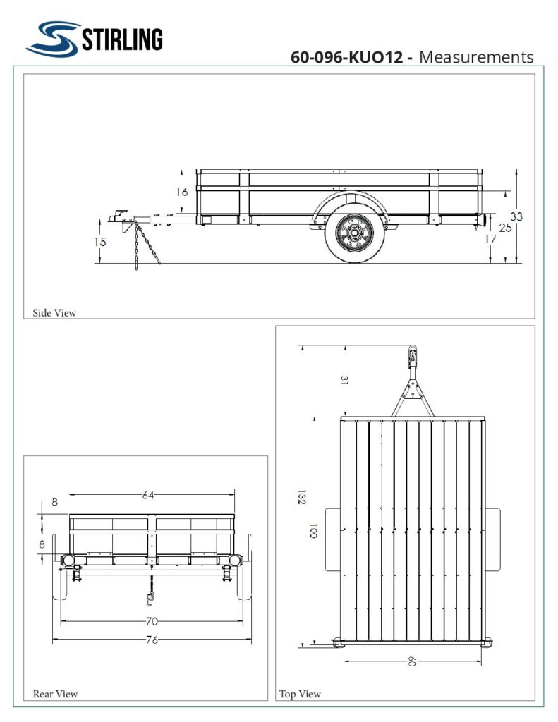 The Stirling 5’ x 8’ Rail Side Kit Trailer offers increased width and hauling capacity while maintaining a manageable, easy-to-tow design. Delivered as a complete DIY kit, it includes rail sides, a finished floor, all frame components, hardware, and clear assembly instructions.