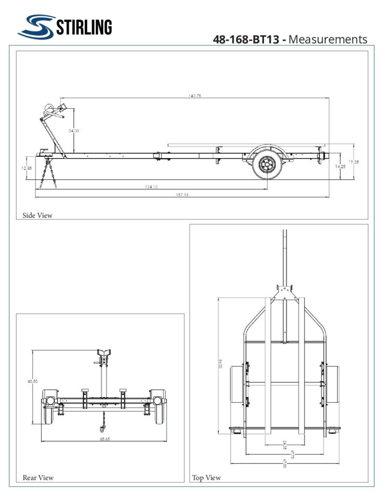 The Stirling 4’ x 13’ Boat Trailer is built for boating enthusiasts who want an easy-towing trailer for everyday trips to their favorite lakes, rivers, or coastal waters. Designed to accommodate watercraft up to 13 feet long, this trailer features fully adjustable 84″ bunks that can be tailored for different hull shapes and sizes.