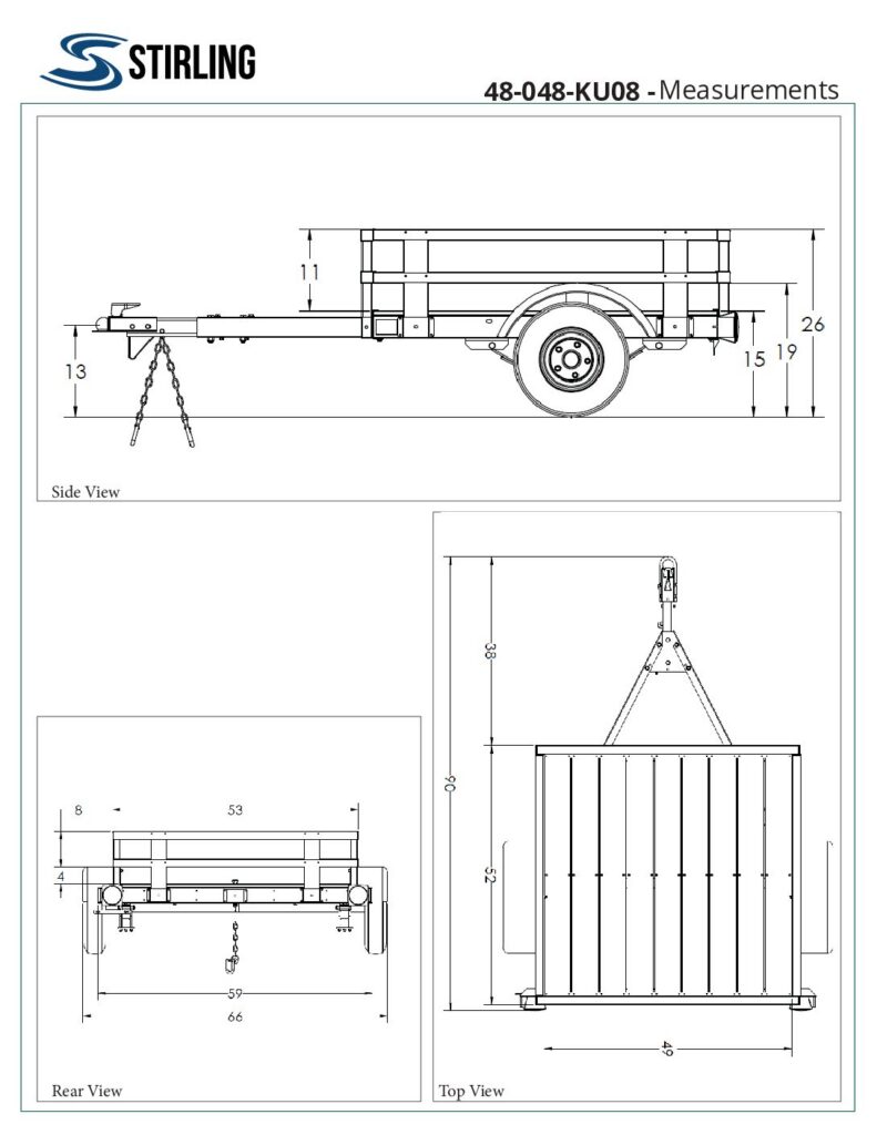 The Stirling 4’ x 4’ Rail Side Kit Trailer is a compact utility trailer designed for everyday hauling tasks where added security and load control are important. Delivered as a complete DIY kit, it includes rail sides and a finished floor, making it easier to transport loose materials, tools, and equipment without additional build-out.