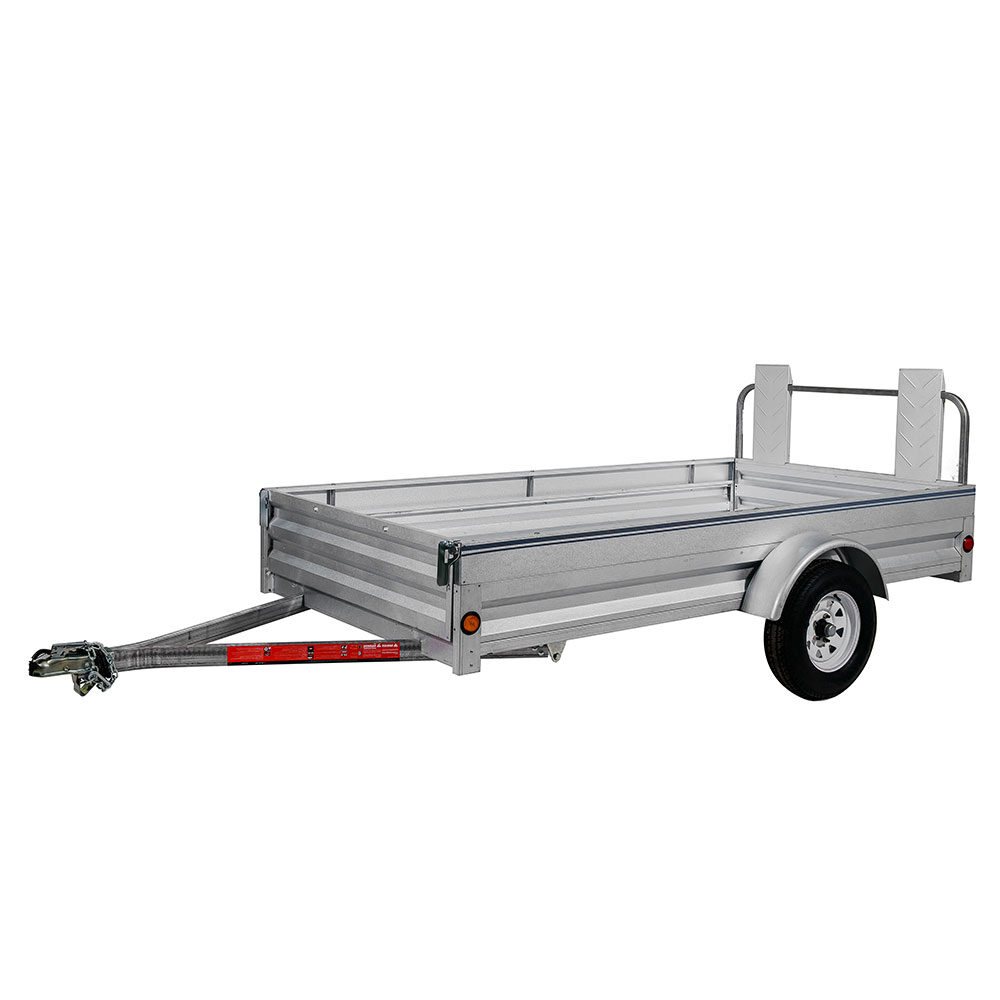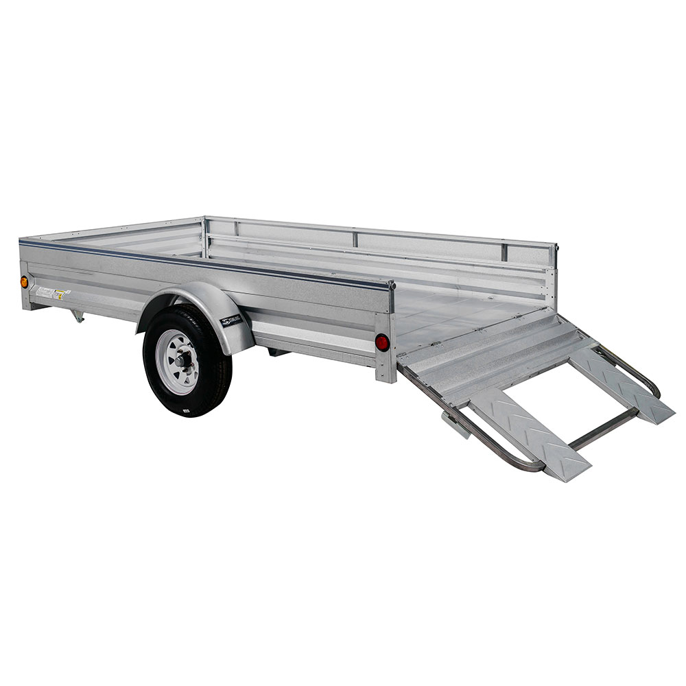 A 5’ x 10’ utility trailer designed for DIYers and outdoor enthusiasts, offering adaptable loading with its adjustable ramp gate that supports a wide range of drive-on equipment.
