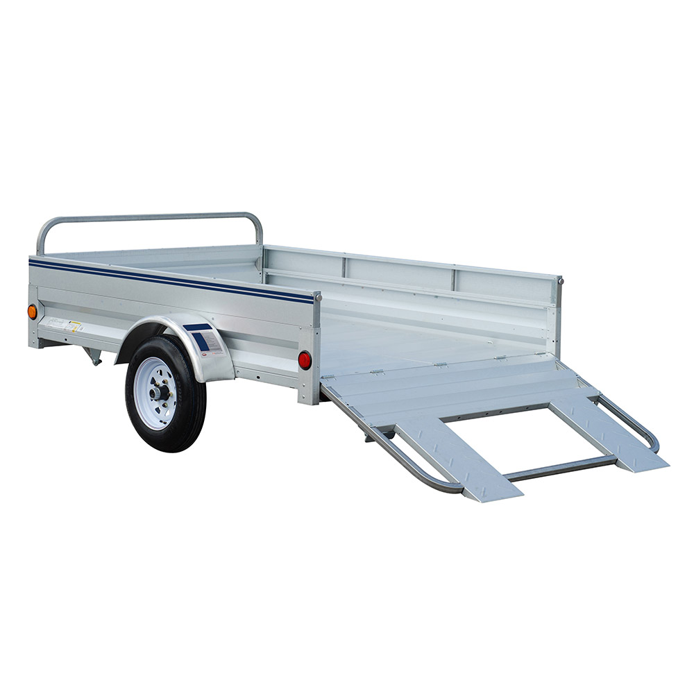 Equipped with fully adjustable ramps, this trailer simplifies the loading of ATVs, motorcycles, and other equipment — whether you’re tackling lawn care, recreational hauling, or home improvement projects. Premium features like LED sealed lights, protected wiring, E-Z Lube® hubs, and smooth torsion suspension come together with a Galvalume Plus™ corrosion-resistant finish for reliable performance and low maintenance.
