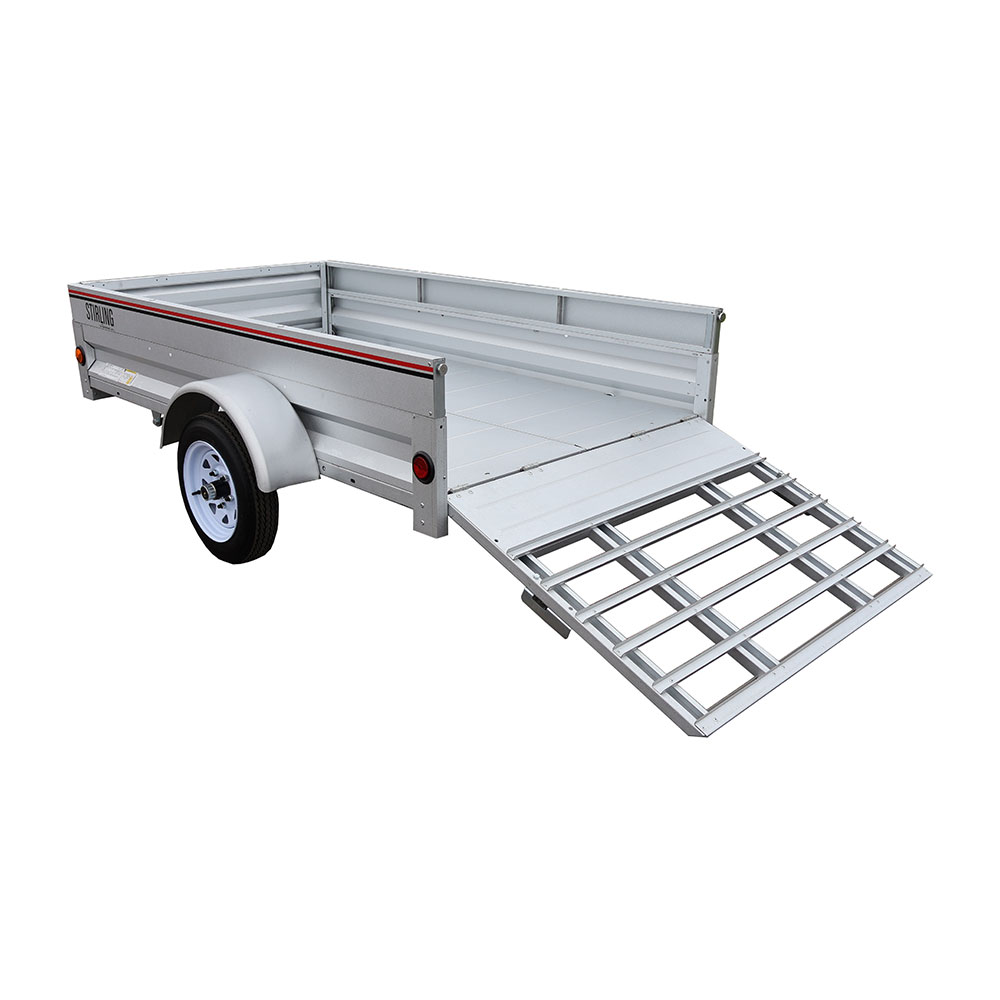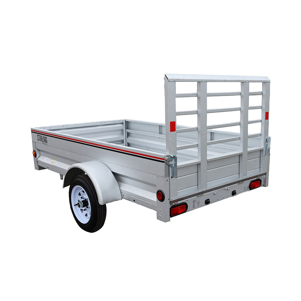 The Stirling 4’ x 7’ Solid Side Utility Trailer provides dependable hauling for a wide range of everyday needs, from yard cleanup and equipment transport, to home improvement projects. Its compact footprint makes it easy to tow, store, and maneuver, while the extendable front gate system provides 15″ of additional bed length for longer materials and equipment.