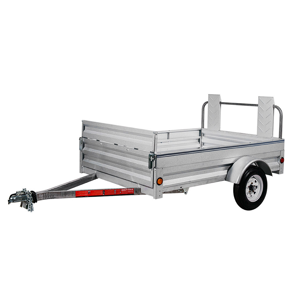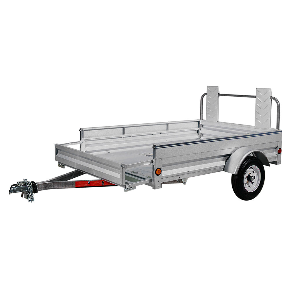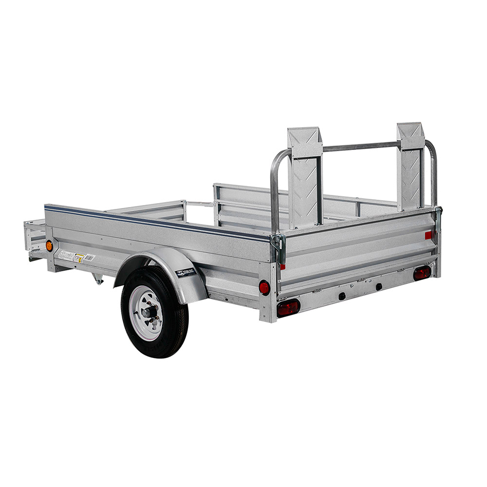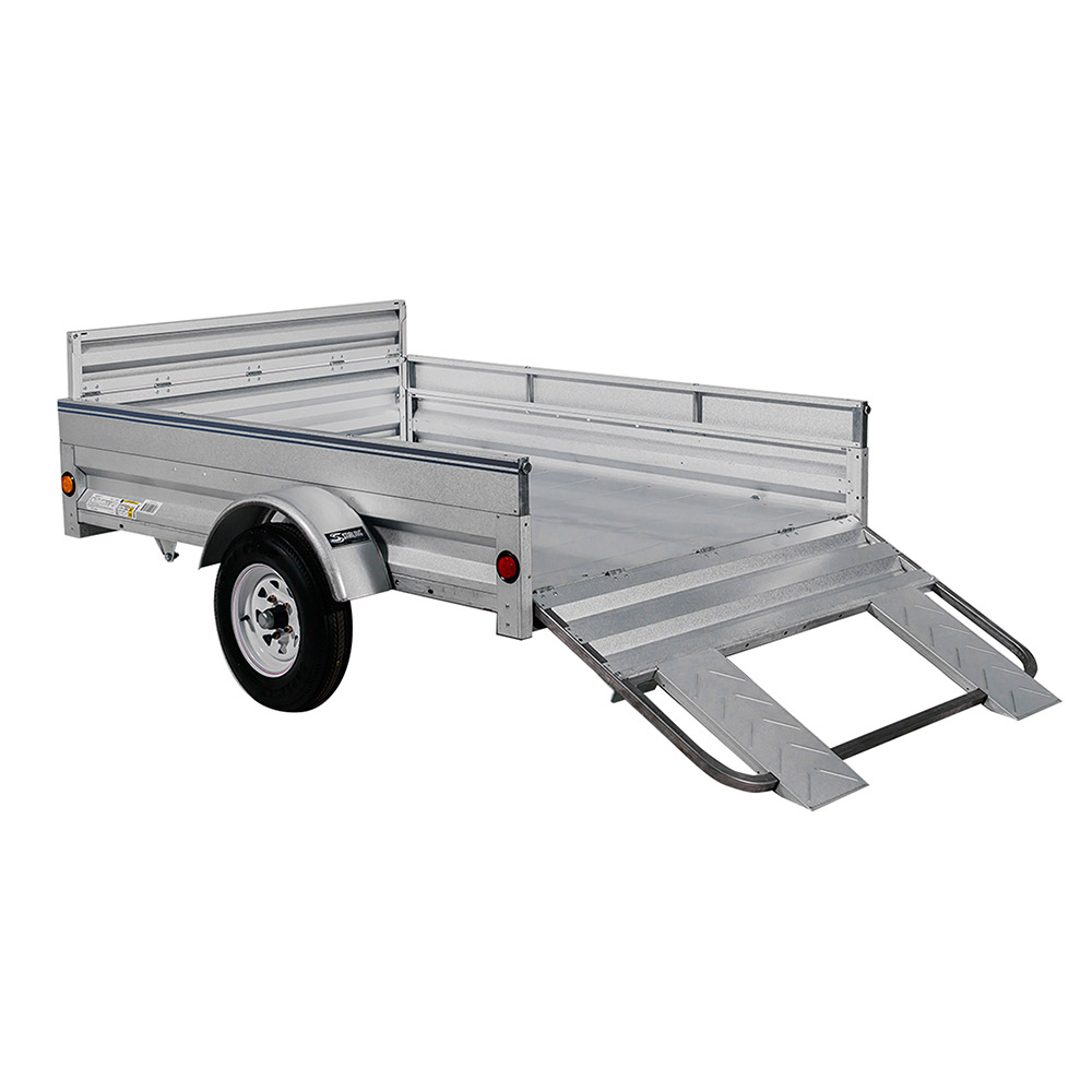 A flexible, light-duty trailer with an exclusive load-retention front gate that adds 15″ of bed length, and fully adjustable ramp gates for easy loading.
